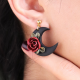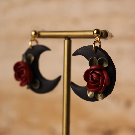 Kadın Özel Tasarım Polimer Kil Siyah Ay Tasarım Floral Moon Küpe