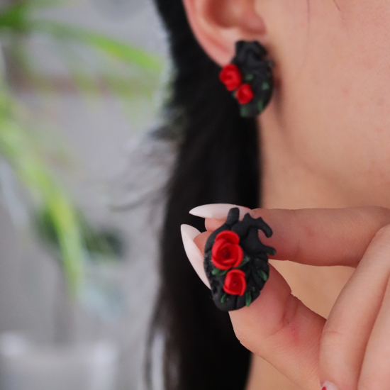 Özel Tasarım Sevgililer Günü Çiçekli Kalp Küpe